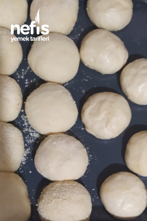 - Mayalanan hamurdan yumurta büyüklüğünde parçalar koparılıp tepsiye yerleştirilir.