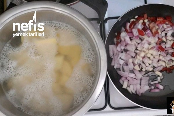 - ????Patatesle soyup haşlamaya bırakıyoruz.