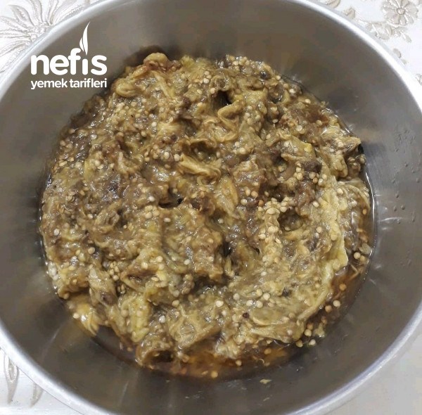 - İlk önce patlıcanları ocakda veya fırında közleyip kabuklarını soyup doğruyoruz.