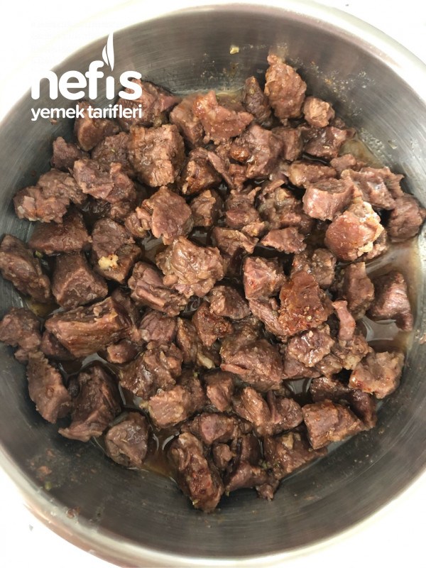 6. 1 yemek kaşığı tereyağ eritilir. Etler mühürlenir.
