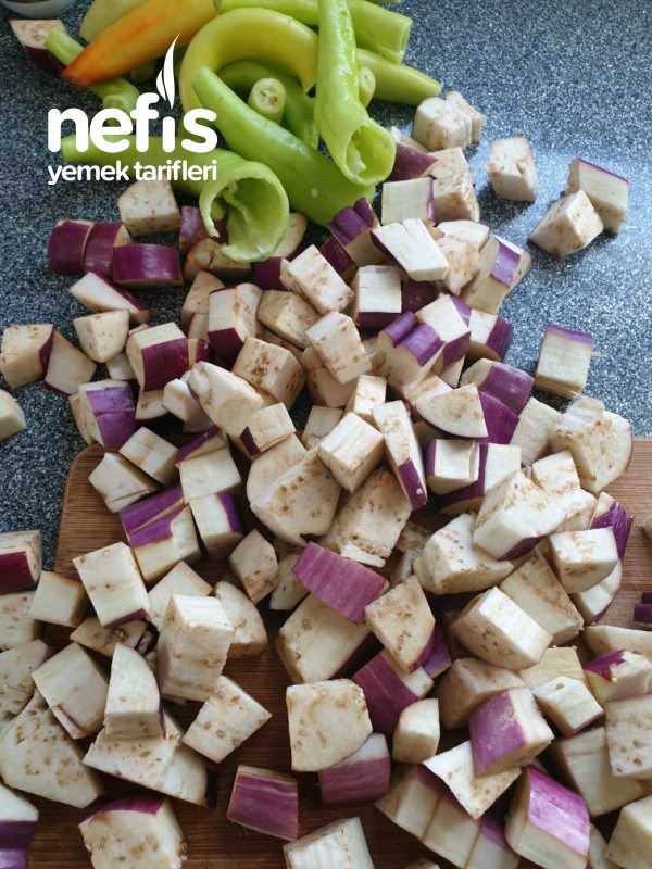1. Öncelikle patlıcanları küp küp doğrayıp yağda kızartın.