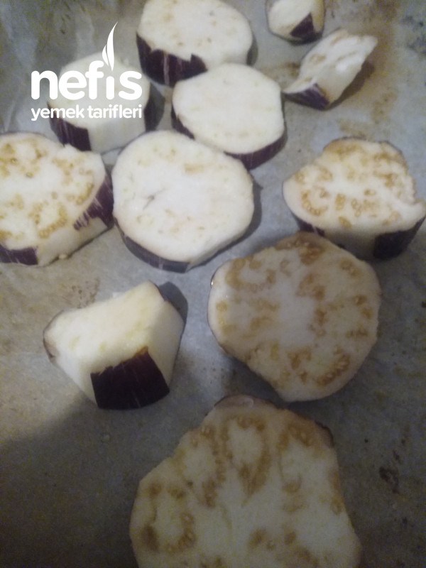 - Sudan alınan patlıcanlar yağlanır, tuzlanır. Yağlı kağıt serilmiş tepsiye dizilir.