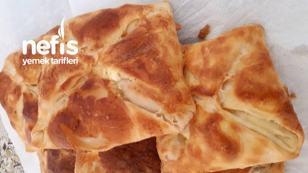 6. Diğer tarafında katlayıp ortasına peynir harcımızı koyup zarf şekli veriyoruz.