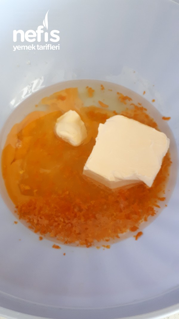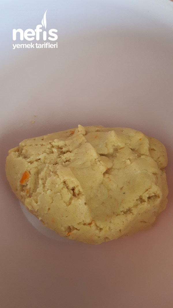 1. Yumuşamış margarin, sıvı yağ, pudra şekeri, portakal kabuğu rendesi, vanilya ve kabartma tozunu bir kapta iyice karıştırın .Un azar azar ekleyin kulak memesi yumuşaklığına gelene kadar yoğrun.
