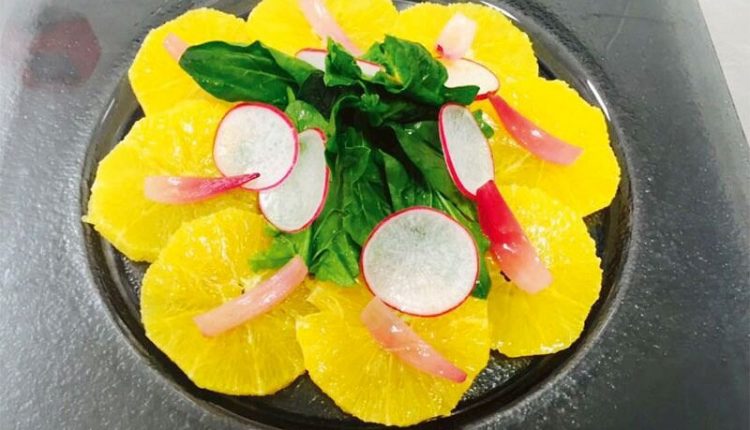 • Portakal, ıspanak, turp ve kırmızı soğanı servis tabağına dizin ve üzerine sosu ek ettikten sonra servis edin.