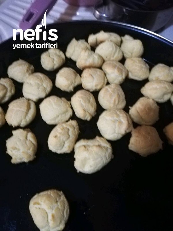 - Daha sonra tepsimize iki kaşık yardımıyla hamurumuzdan alıp koyuyoruz.
