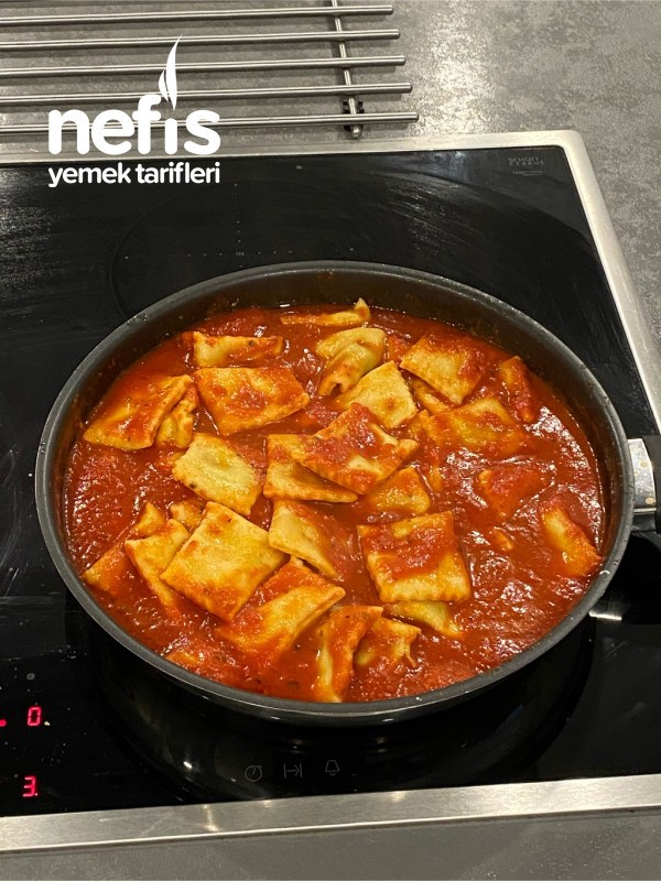 - Ayrı bir tencerede raviolileri kaynamış suya atıp 2 dk kadar pişirip sosun içine alıyoruz.