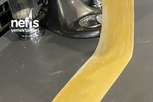 - Makarna makinesiyle inceltip uzun bir hamur elde ediyoruz.