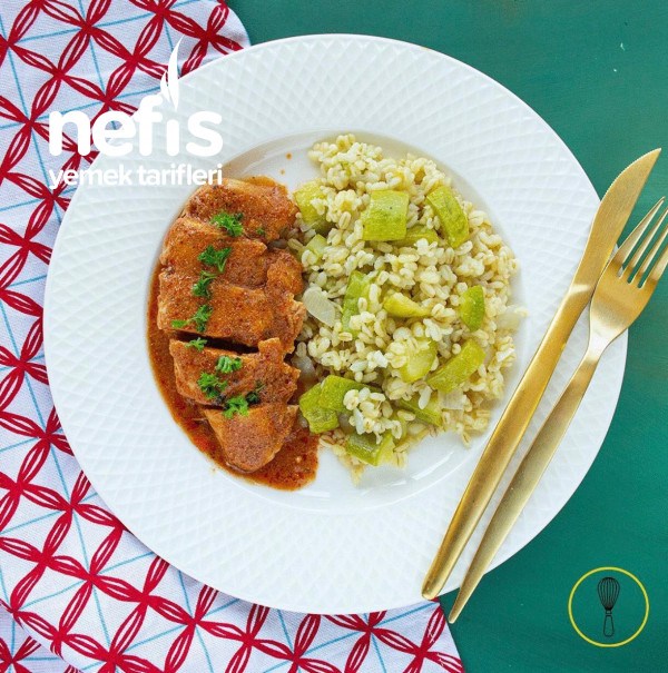 Ricotta Peynirli Salçalı Fırın Tavuk Ve Kabaklı Bulgur Pilavı