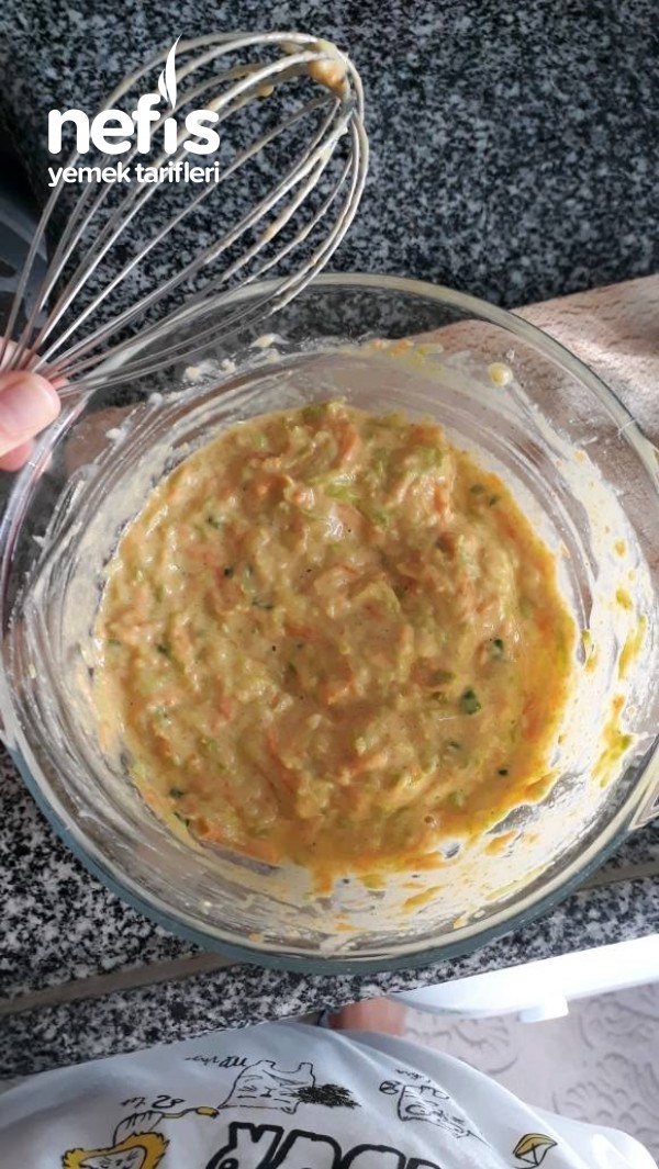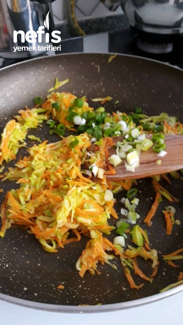 1. Kabak havuç rendenin ince tarafıyla rendelenip taze soğanı da ince ince kıyıp azıcık sotelenir.