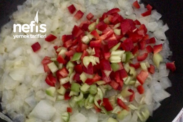 - Tavaya sıvı yağ alınır, küçük küçük yemeklik doğranan soğanlar eklenir ve hafif pembeleşene kadar pişirilir.