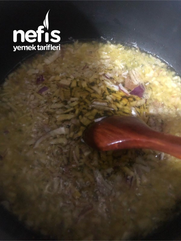 - Kavurduğumuz soğanın üzerine yeterince suyunu ekleyip salçasını ilave ediyoruz.