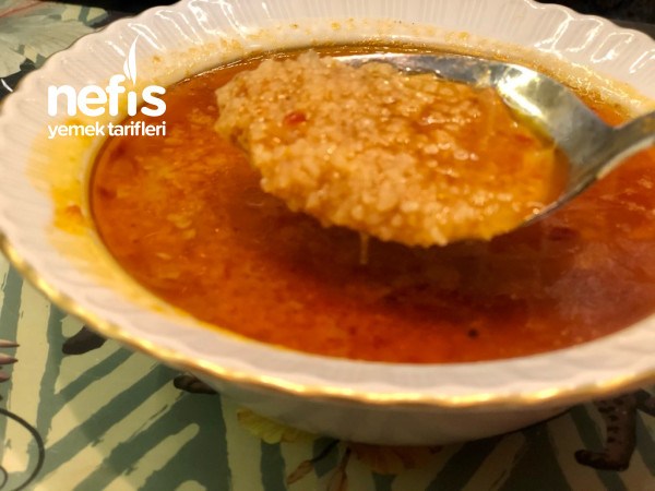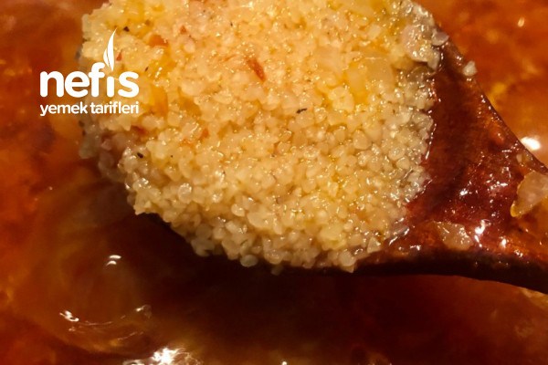 - Kaynayan salçası eriyen suya ince bulgurumuzu ekliyoruz.
