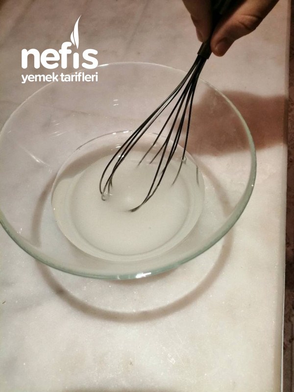 - İşleme başlamadan önce, şeker ile su derin bir kaseye konarak çırpma teli ile şeker eriyene kadar çırpılır.