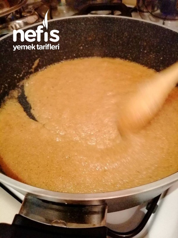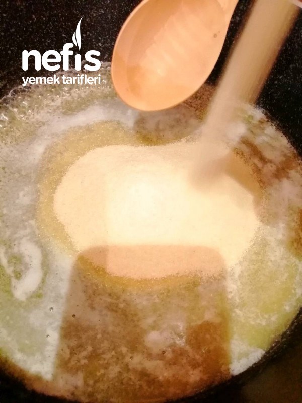 - Harlı ateşte irmik kızarana kadar hiç durmadan karıştırılır.