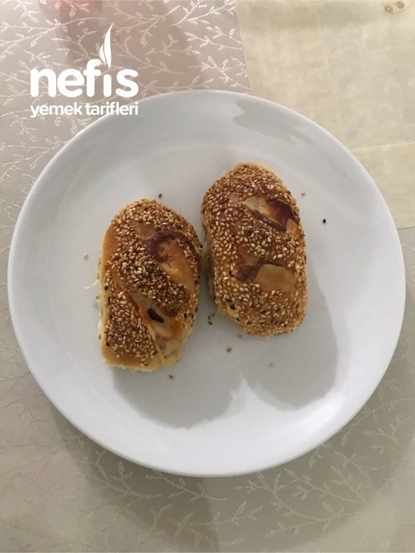Sosisli Kaşarlı Simit Poğaça (Mayalı)