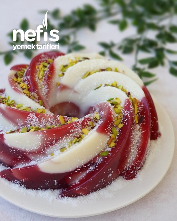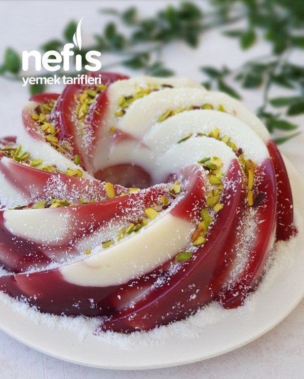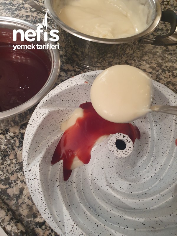 - Yine aynı şekilde bir sade bir vişneli kısımdan dökerek muhallebimizi bitiriyoruz.