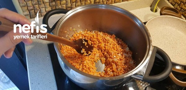 - ☘ Zeytinyağında soğanı orta ateşte 3-4 dk kavurun. Üzerine mercimeği ve sarımsağı ekleyin ve orta ateşte yaklaşık 3 dk kadar daha kavurun.