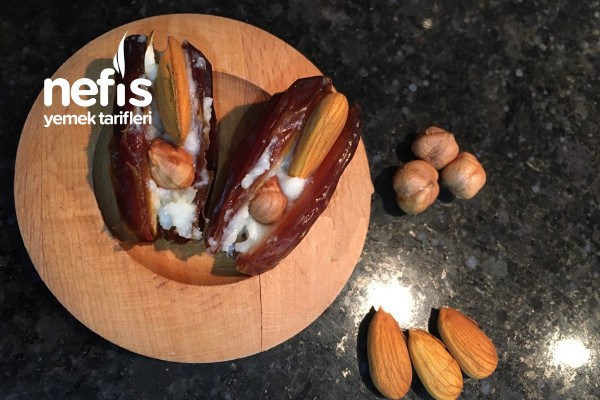 - İçine kaymak sürüp arzuya göre kuruyemiş koyuyoruz. Hem sağlıklı hem enerjik hurmayla kaymağı damaktaki uyumu leziz. Afiyet olsun ????.