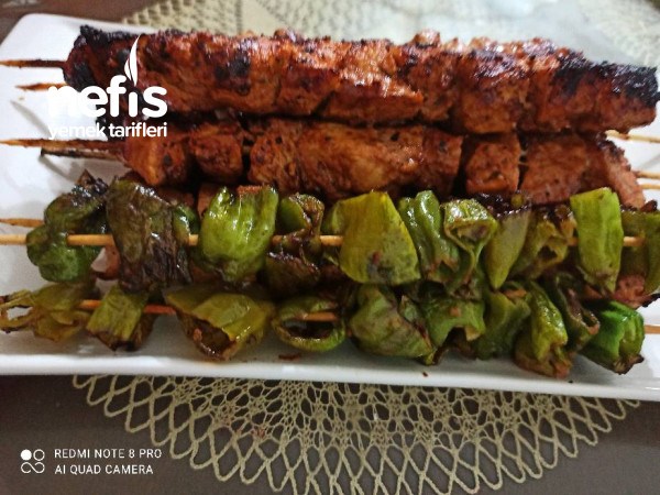 4. Ben biberi de çöp şişlere dizerek kızarttım tavuğun yanına çok yakışmıştı (biberlerin tohum kısımlarını çıkartarak halka olacak şekilde doğradım hafif tuzlayarak çöp şişlere taktım) mutlaka deneyin.
