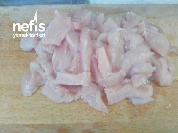 - Tavuk göğsünü ince jülyen olarak doğruyoruz.