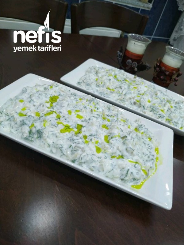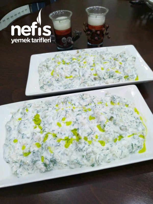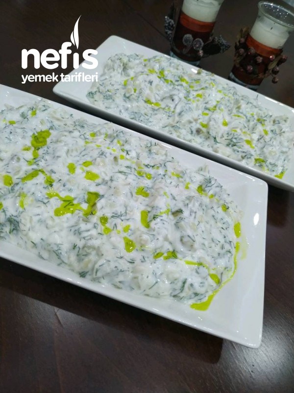 - Dere kornişon doğrayıp üzerine boşaltıp kalan malzemede eklenir iyice karıştırılır ve zeytinyağı gezdirilir ve sunuma hazırdır.Afiyet olsun ????.
