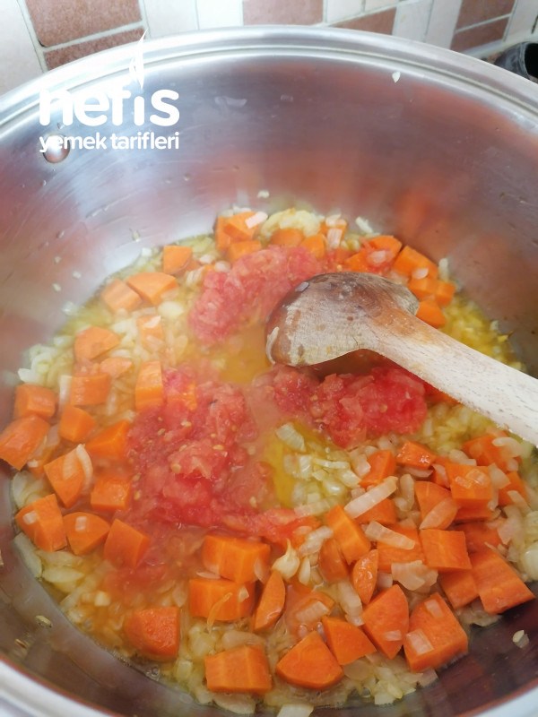 4. Küp küp doğradığımız havucu ekleyelim, bir dakika kadar kavuralım.