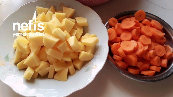 4. Havuç ,patates temizlenip doğranıp tencereye koyulup biraz pişirilir.