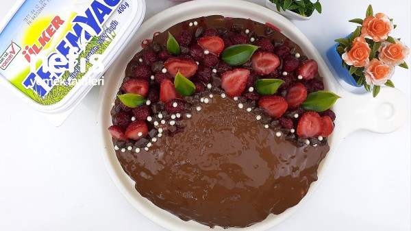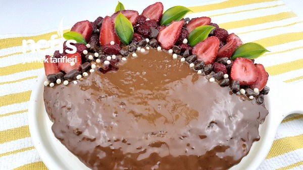 - Soğumuş olan kekin üst kısmını çikolata sosu ile kaplayın.
