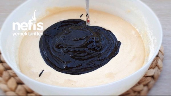 5. En son soğuyan çikolatayı ekleyerek yavaşça karıştıralım.