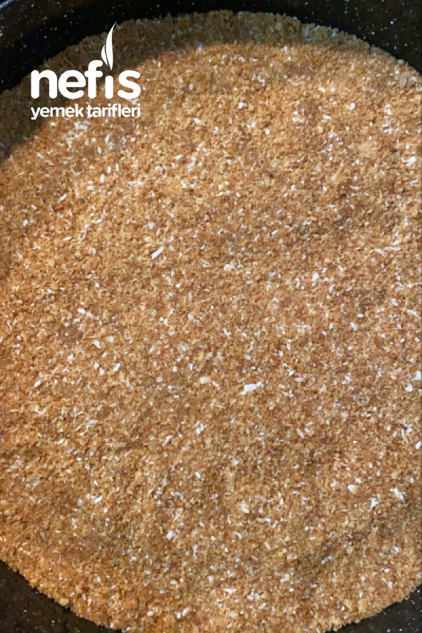 3. Hindistan cevizi ekleyin karıştırın ve kelepçeli kalıbın en altına güzelce yayın.