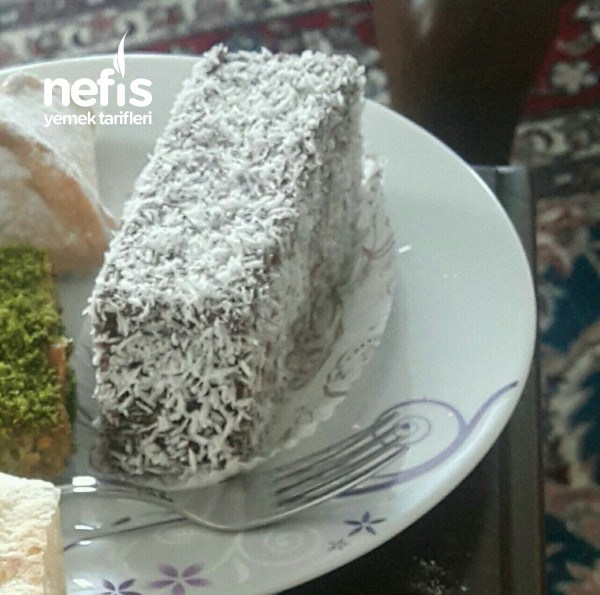 - Soğuyan kekimizi dikdörtgen yada küp şeklinde dilimlenir ılık sosa batırıp Hindistan cevizine bulanır servis edilir.