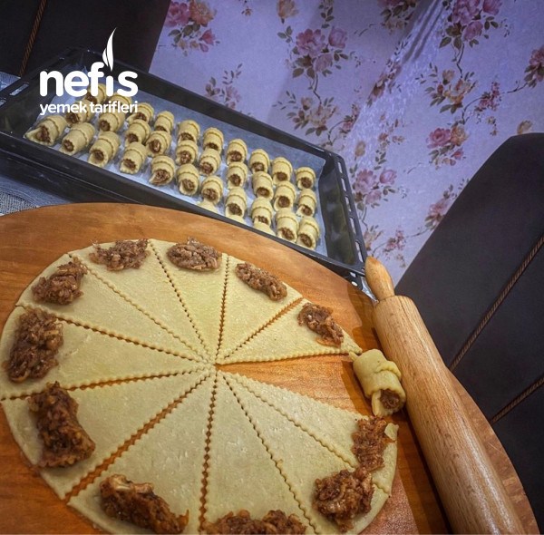 - Sonra oklava ile açıp şekil verelim iç harçlarını koyup dürelim.