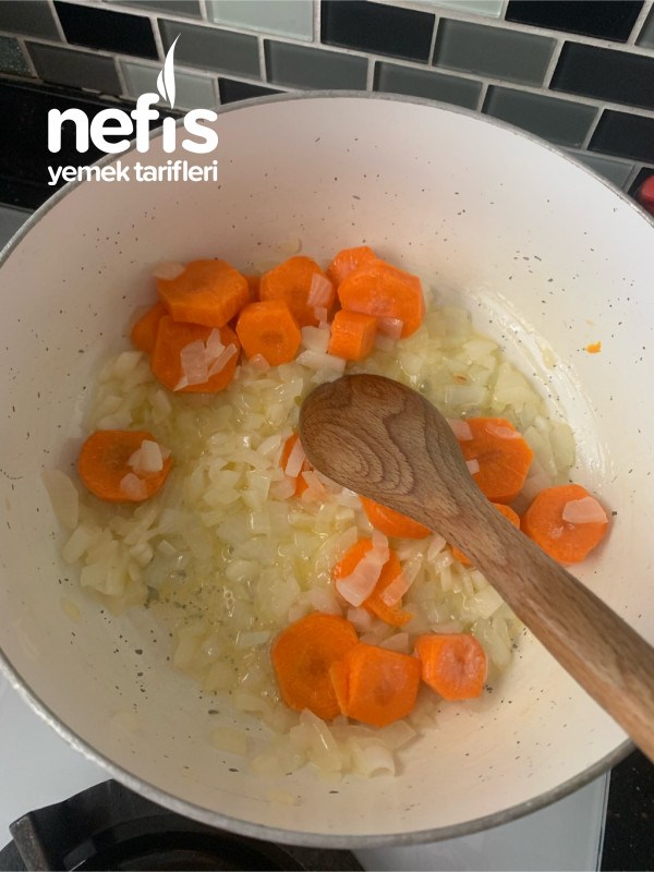 1. 2 yemek kaşığı sıvı yağı tencereye alıp ince doğradığımız soğanları ve ince kıyılmış sarımsakları kavurun.
