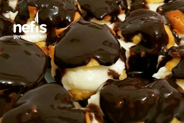 - Hazırladığımız profiterollerin üzerine döküp servis ediyoruz.