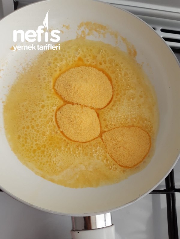 - 1 yemek kaşığı tereyağını tavaya koyuyoruz eriyen yağın içine.