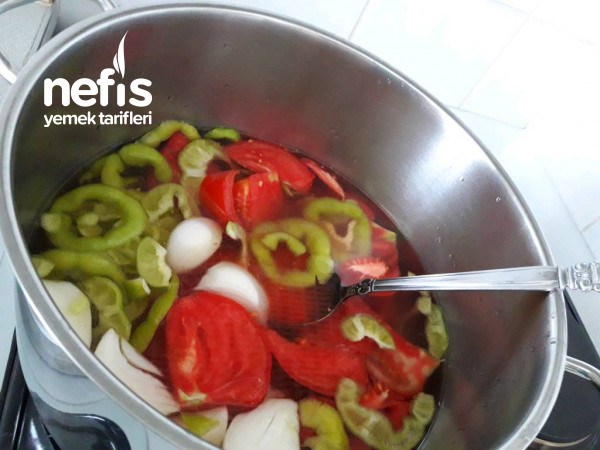 3. Yağlarını, salçasını ve tuzunu da katıp kaynamaya bırakıyoruz.