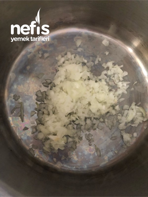- Önce tencerenize sıvı yağ ve yemeklik doğradığımız soğanınızı alın.