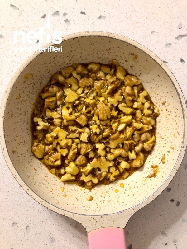 - Ceviz parçaları ve kırmızı toz biber eklenir. 1-2 dk karıştırdıktan sonra kapatılır.